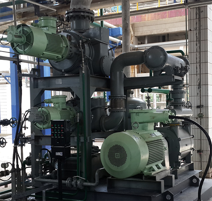 正常運(yùn)行維持真空階段時(shí),使用羅茨水環(huán)高效真空機(jī)組進(jìn)行真空維持。