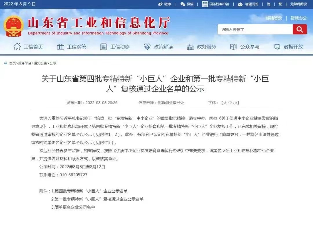 公司被評為國家級小巨人企業(yè)