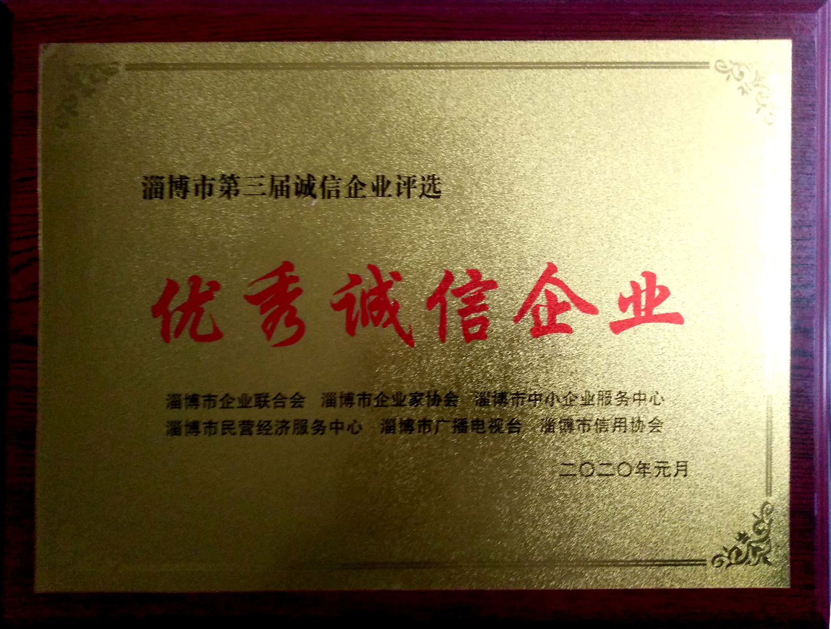 公司榮獲“淄博市優(yōu)秀誠(chéng)信企業(yè)”稱(chēng)號(hào)